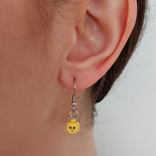 Uhani so ročno izdelani iz originalnih LEGO delčkov in osnove za uhan iz nerjavečega jekla, zlepljeni skupaj.