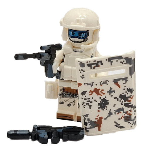 Posebno izurjena policijska enota za reševanje najtežjih nalog v snegu. Figurica in orožje NI original LEGO (je pa kompatibilno).