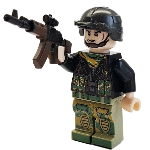 Vsebuje figurico in pripadajoče orožje, kot na sliki.