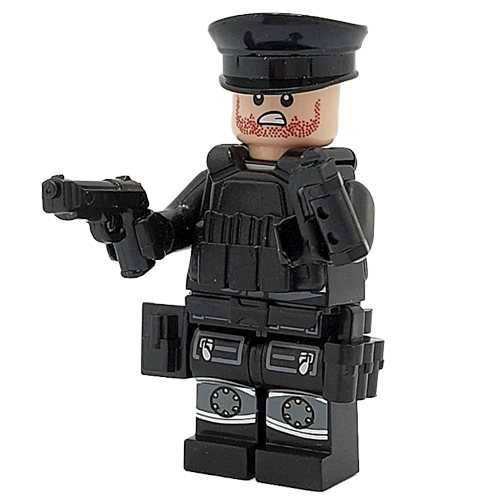 Posebno izurjena policijska enota za reševanje najtežjih nalog. Figurica in orožje NI original LEGO (je pa kompatibilno).