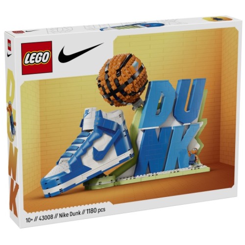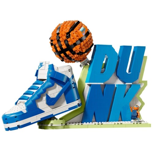 Prva in 40 let stara športna copata Nike Dunk je globalna ikona in zdaj si ti na vrsti, da sestaviš naslednjo igro z osupljivim kompletom za sestavljanje iz zbirke LEGO® Nike. Sestavi športno copato, košarkarsko žogo in slogan, nato pa razstavni kos prilagodi, da bo v skladu s tvojimi željami. In nikar ne spreglej ekskluzivne minifigure B'Ball Head, ki ima svoje kulske športne copate Nike!