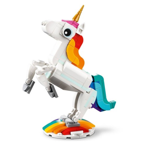 Odpotuj v daljno mitološko deželo za ure in ure zabave s čudovitimi bitji. Poglej, kako čarobni samorog z zlatim rogom kopitlja po mavrični pokrajini. Za še več čarobne akcije lahko namesto njega sestaviš morskega konjička, ki plava nad morskim dnom, ali pa ljubkega pava z repom iz pisanih peres.