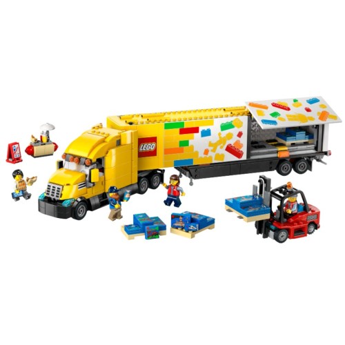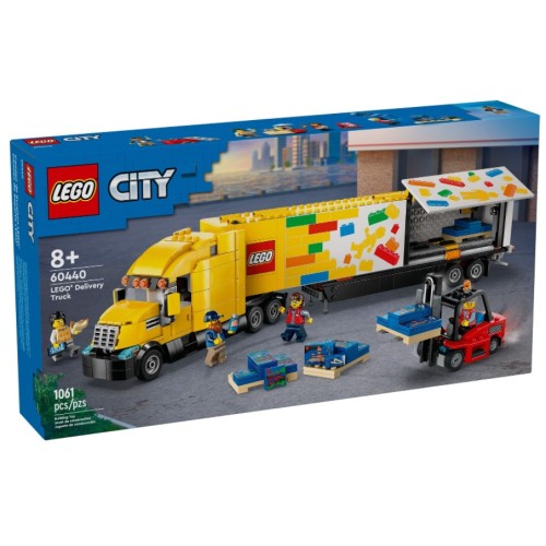 Malega sestavljalca navduši z igralnim kompletom LEGO City Rumeni dostavni tovornjak (60440), v katerem so LEGO tovornjak z veliko prikolico, palete igralnih kompletov, delujoč viličar in stojnica z vročimi hrenovkami. Vsebuje še 4 minifigure za ure in ure domišljijske igre in pripovedovanje zgodb. Komplet s poltovornjakom in prikolico LEGO ima priložena natisnjena navodila za sestavljanje in 3D navodila v aplikaciji LEGO Builder – to je digitalni pripomoček z intuitivnim orodjem za povečevanje in vrtenje, ki otrokom omogoča, da si modele med sestavljanjem ogledajo z vseh strani.