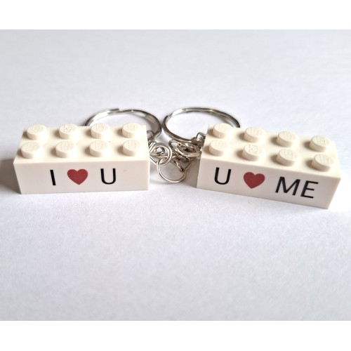 Set vsebuje obesek z 1xLEGO kocko, ki je obojestransko potiskana z unikatnim napisom (na sliki sta dve kocki, da se vidi napis z obeh strani).